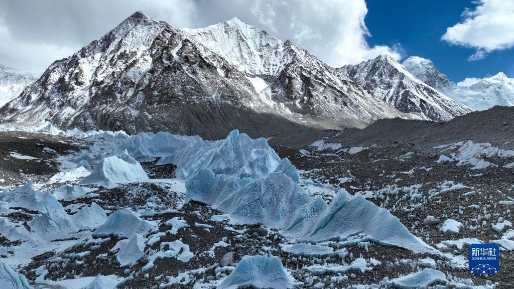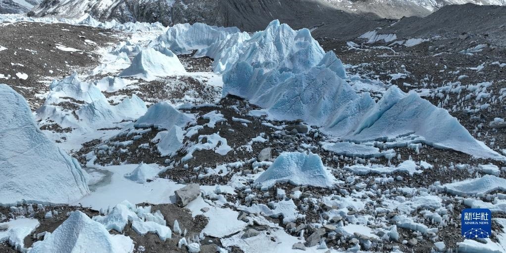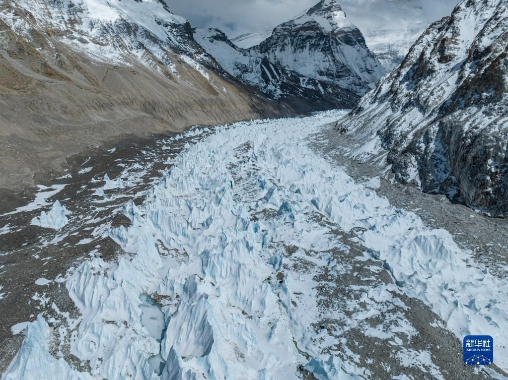 這是珠峰腳下的中絨布冰川(5月15日攝,無人機(jī)照片)。
