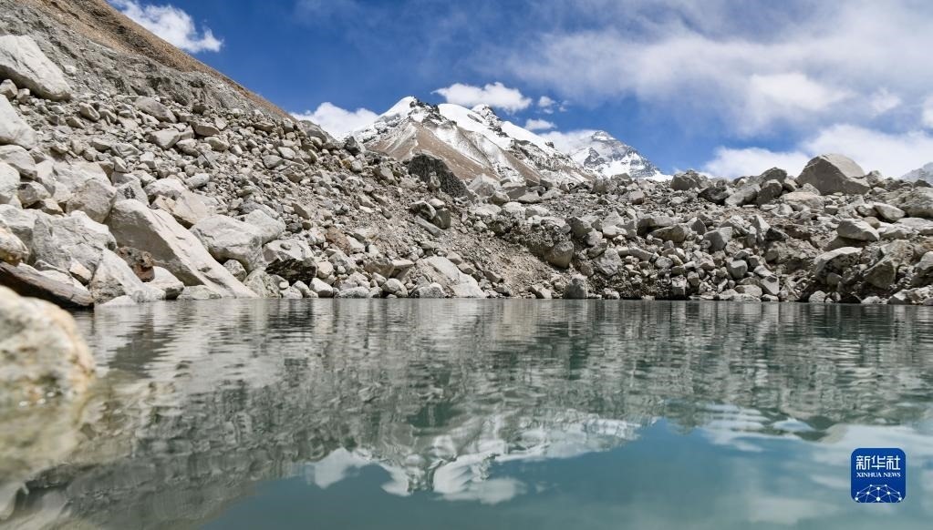 這是絨布冰川融水形成的湖泊(5月12日攝)。