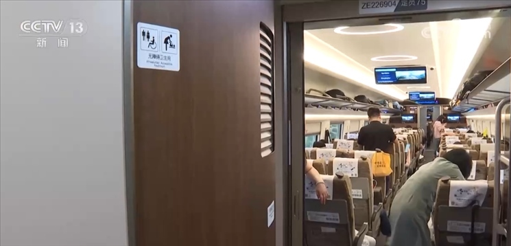 鐵路部門也推出了一系列無障礙服務(wù)舉措。由北京西開往湖南邵陽的G811次智能復(fù)興號動車組,16節(jié)車廂中的第4號、第12號車廂的150個座位優(yōu)先提供給殘障旅客,也被稱作“無障礙車廂”,里面配備了更寬闊的通過門、無障礙衛(wèi)生間、輪椅放置區(qū)、盲文服務(wù)提示標識等。