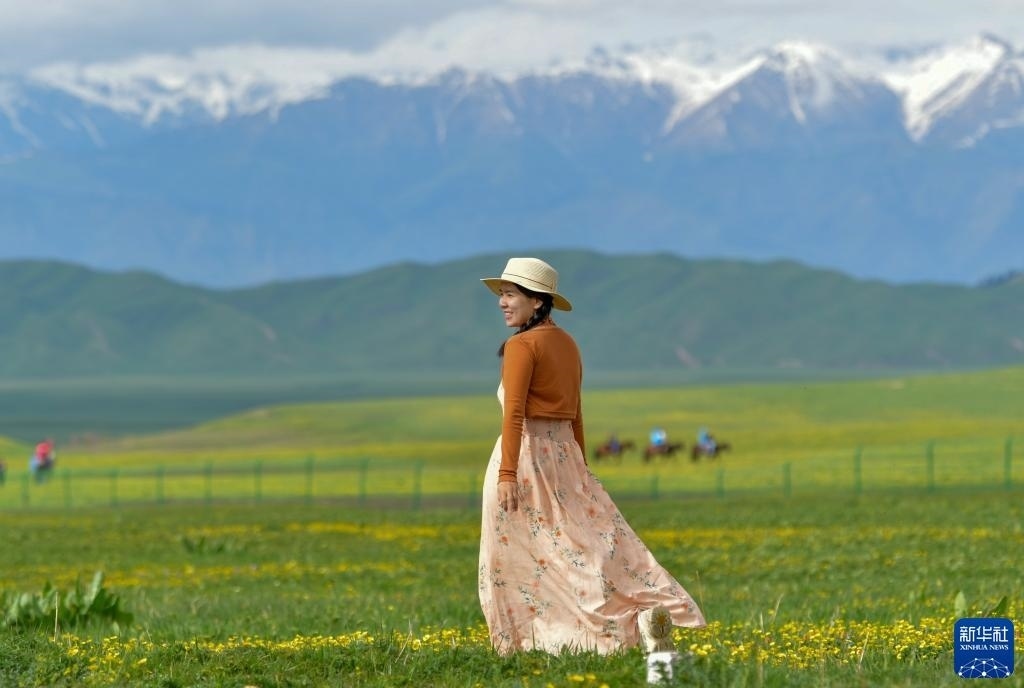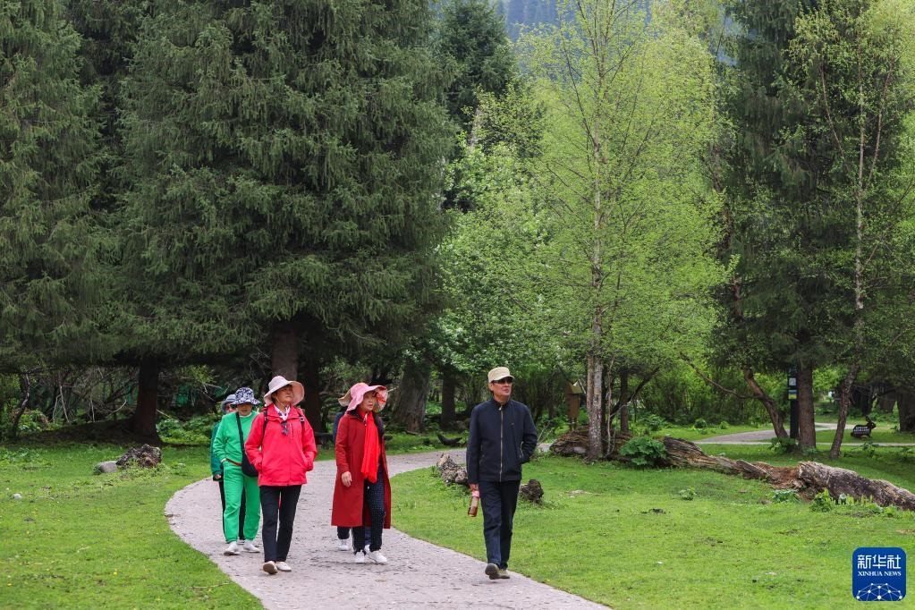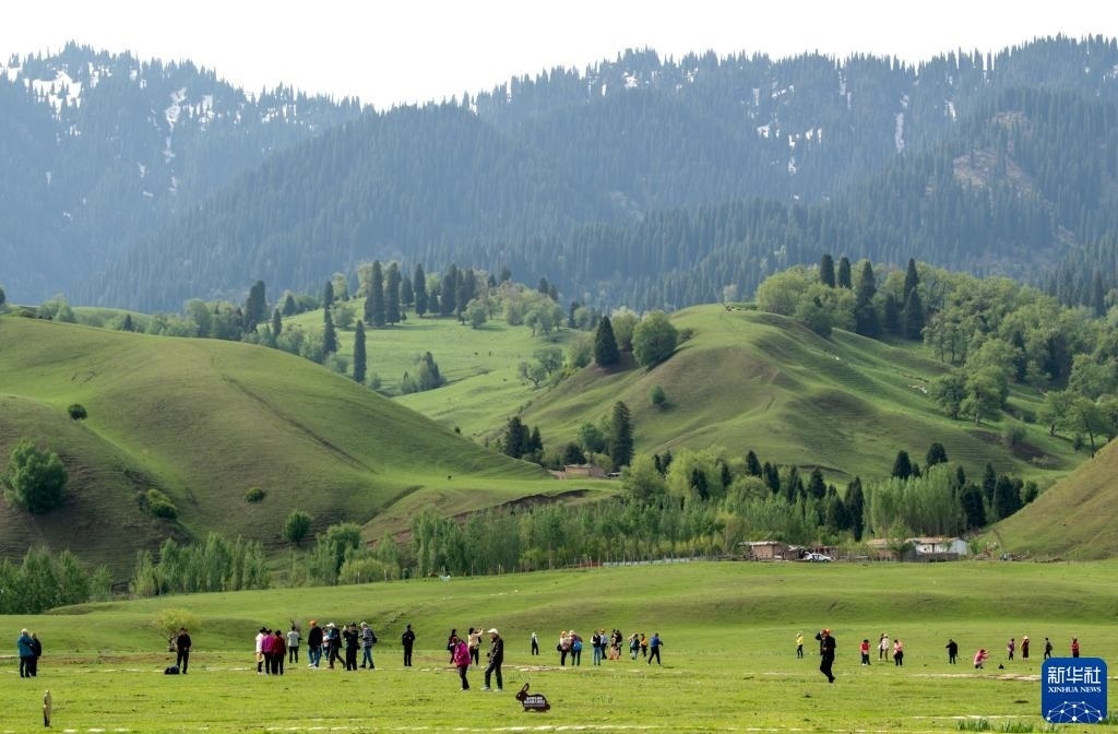 5月20日,游客在位于新疆新源縣的那拉提旅游風(fēng)景區(qū)觀光。   新華社記者 郝昭 攝