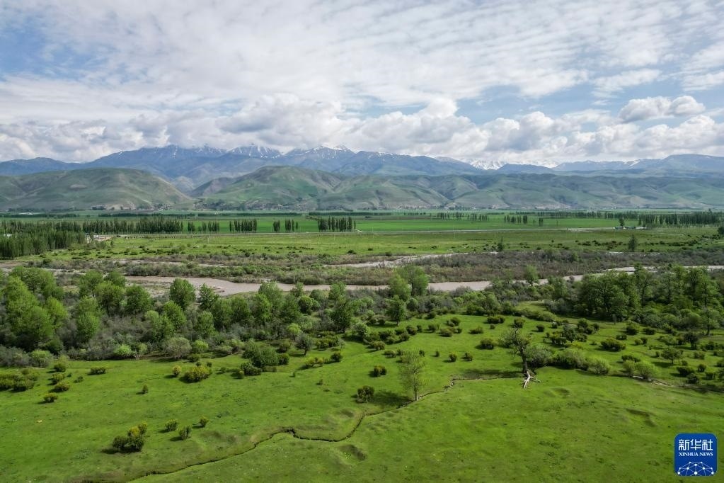 5月20日拍攝的那拉提河谷草原風(fēng)光(無人機照片)。   新華社記者 郝昭 攝