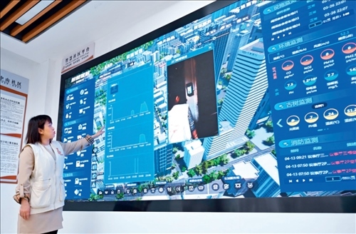 福建省福州市鼓樓區(qū)是國家智能社會治理綜合實驗基地,社區(qū)工作者在鼓樓區(qū)鼓東街道中山社區(qū)介紹“智慧社區(qū)”建設(shè)情況(2023年4月25日攝)林善傳攝/本刊