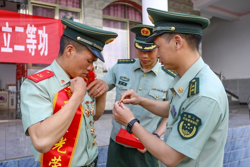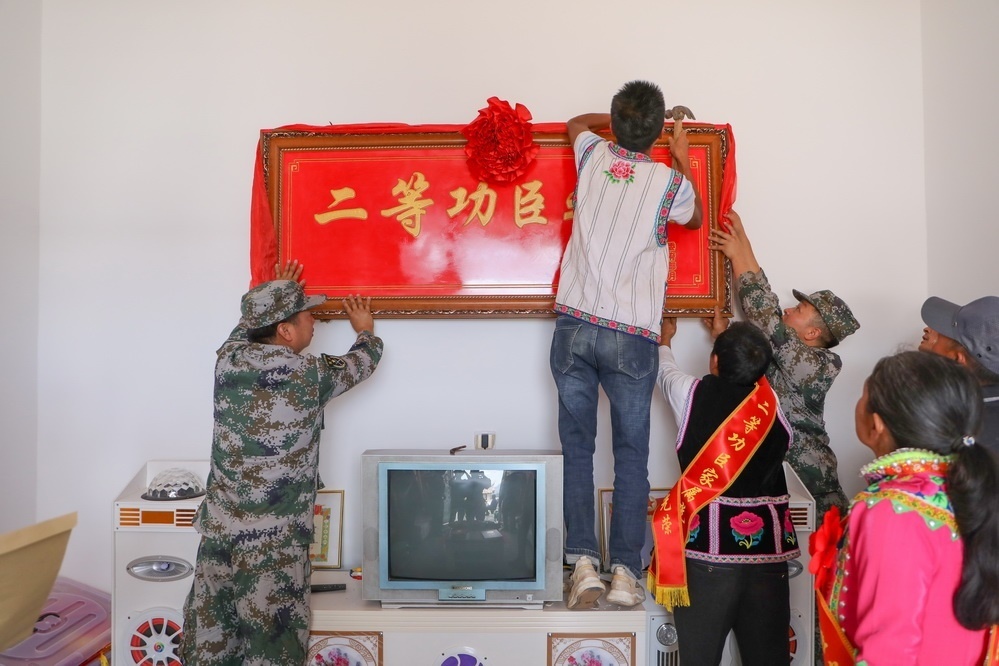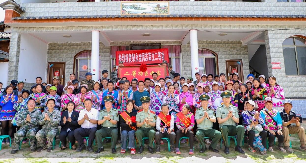 鑼鼓喧天,鞭炮齊鳴。近日,云南省楚雄彝族自治州大姚縣桂花鎮(zhèn)大河村張燈結彩、熱鬧非凡,武警云南總隊昭通支隊派出送喜報小分隊輾轉600余公里來到這里,聯(lián)合當地人武部和退役軍人事務局,為榮立個人二等功的現役軍人鄒永金的家屬送去喜報、牌匾和慰問金。