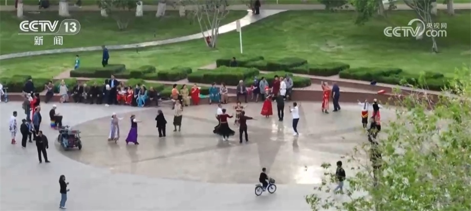 塔城市新城街道哈爾墩社區(qū)黨總支書記 主任 巴哈爾古力(維吾爾族):音樂一響起來,他們都特別喜歡跳。比如說我是維吾爾族,我也會跳比如說蒙古族舞、俄羅斯族舞、塔塔爾族舞、漢族舞,還有維吾爾族舞、哈薩克族舞,反正哪個民族的音樂響起來,我們都是不管是會還是不會,我們通過“百家宴”都學(xué)。