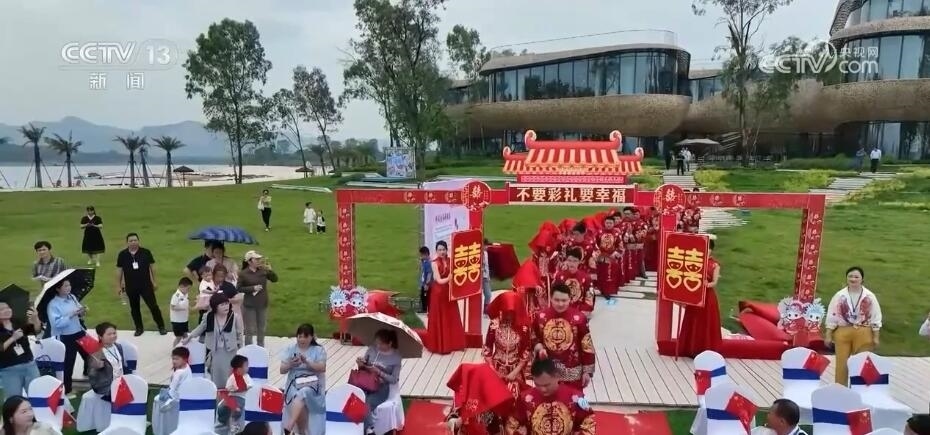 央視網(wǎng)消息:婚禮是人生中美好幸福的時(shí)刻,但一些地方喜宴鋪張、低俗婚鬧、隨禮攀比等習(xí)俗,經(jīng)常讓喜事變了味、走了調(diào)。隨著新型婚育文化的倡導(dǎo),為愛減負(fù)的集體婚禮成為越來越多青年人的選擇。五月是結(jié)婚的高峰期,多地舉行了花式集體婚禮,一起來看一下。