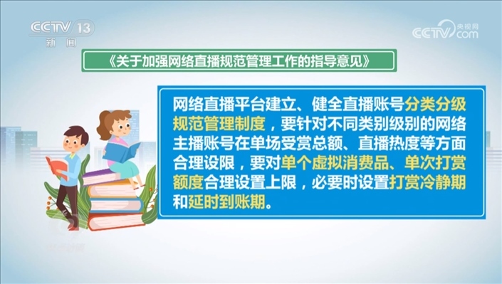 根據(jù)行業(yè)管理的要求,2021年我國《關(guān)于加強網(wǎng)絡(luò)直播規(guī)范管理工作的指導(dǎo)意見》中就提出,網(wǎng)絡(luò)直播平臺建立、健全直播賬號分類分級規(guī)范管理制度,要針對不同類別級別的網(wǎng)絡(luò)主播賬號在單場受賞總額、直播熱度等方面合理設(shè)限,要對單個虛擬消費品、單次打賞額度合理設(shè)置上限,必要時設(shè)置打賞冷靜期和延時到賬期。時隔兩年多的時間,這些要求一些平臺并沒有落實。