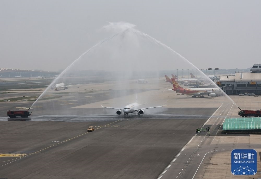 5月28日,C919首個(gè)商業(yè)航班東航MU9191飛抵北京首都國(guó)際機(jī)場(chǎng)。新華社記者鞠煥宗攝