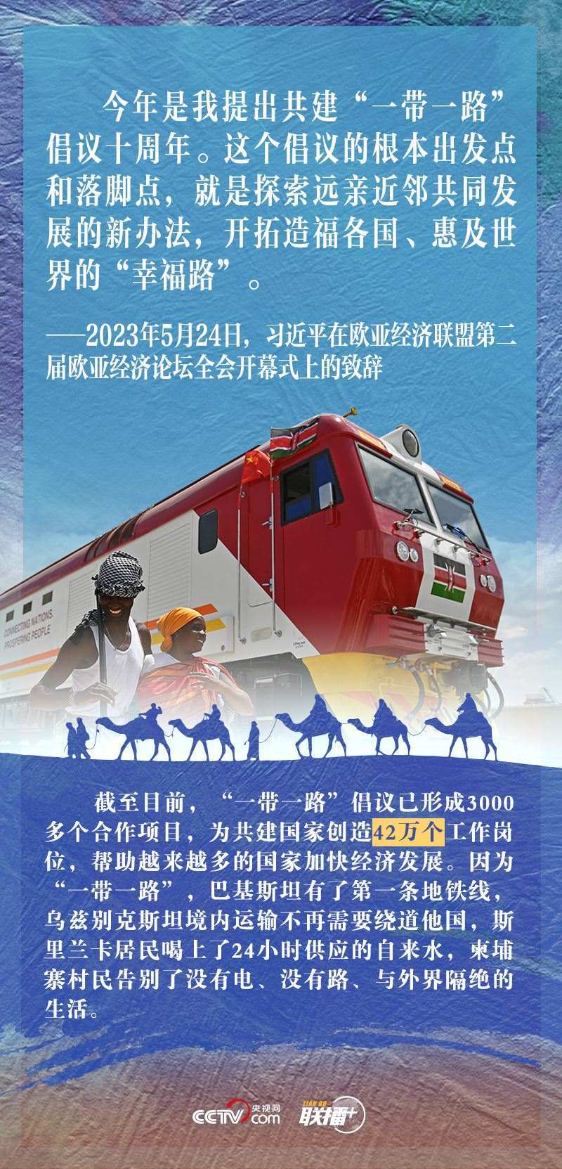 “今年是我提出共建‘一帶一路’倡議十周年。這個(gè)倡議的根本出發(fā)點(diǎn)和落腳點(diǎn),就是探索遠(yuǎn)親近鄰共同發(fā)展的新辦法,開(kāi)拓造福各國(guó)、惠及世界的‘幸福路’?!?月24日,習(xí)近平主席在出席歐亞經(jīng)濟(jì)聯(lián)盟第二屆歐亞經(jīng)濟(jì)論壇全會(huì)開(kāi)幕式并致辭時(shí)指出。