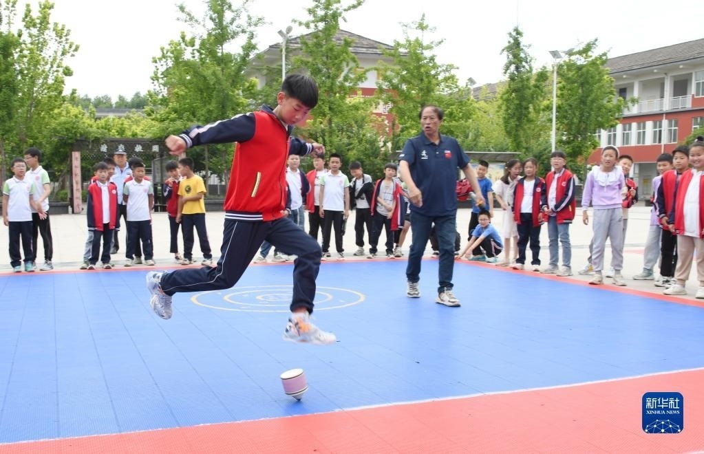 5月30日,河南省濟(jì)源市梨林鎮(zhèn)中心小學(xué)的學(xué)生參加校園足螺比賽。 新華社發(fā)(苗秋鬧攝)