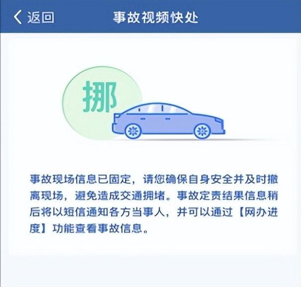 民警根據(jù)視頻通話采集的證據(jù)信息,確定各方過錯行為和事故責任以完成認定。系統(tǒng)會通過手機短信告知當事人事故認定結果,當事人可以通過“交管12123”APP的【網辦進度】查看電子版事故認定書。如對事故責任認定有異議的,可在事故認定文書送達之日起三日內書面申請復核。同時,可以在線向保險公司直接發(fā)起事故定損理賠。
