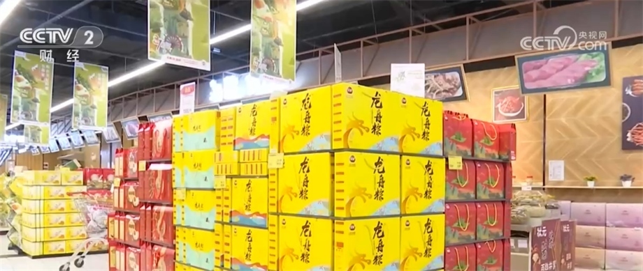 江蘇南京某超市食品銷售部經(jīng)理 周雯:今年各品牌推出了大黃米粽,它跟之前的粽子相比比較軟和比較糯,端午前兩周和前一周是高峰期,端午當(dāng)天會是銷售的峰值。