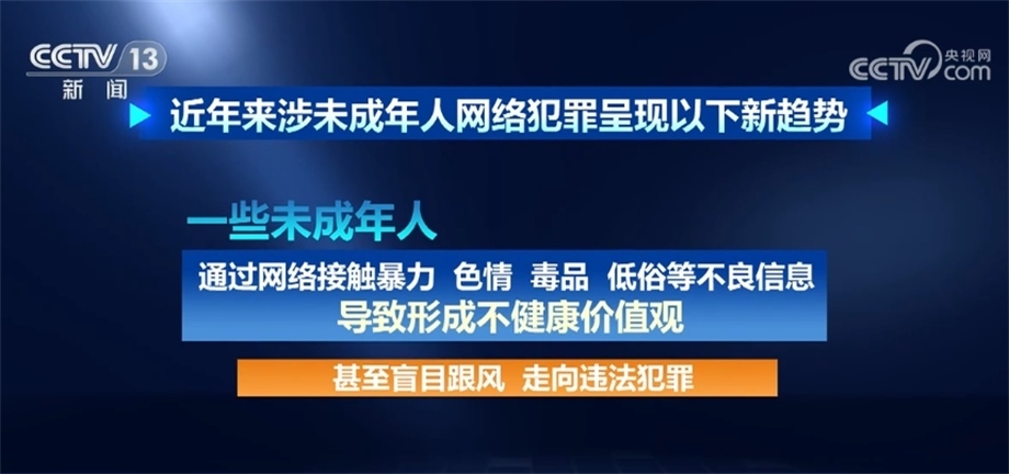 據(jù)最高檢相關(guān)部門負(fù)責(zé)人介紹,近年來(lái)涉未成年人網(wǎng)絡(luò)犯罪呈現(xiàn)以下新趨勢(shì):未成年人觸網(wǎng)低齡化日趨明顯,更易遭受網(wǎng)絡(luò)不法侵害;利用網(wǎng)絡(luò)侵害未成年人犯罪手段復(fù)雜多樣,方式不斷翻新,“網(wǎng)絡(luò)誘騙”“隔空猥褻”等新類型犯罪隱蔽性強(qiáng)、打擊難度大;一些未成年人通過(guò)網(wǎng)絡(luò)接觸暴力、色情、毒品、低俗等不良信息,導(dǎo)致形成不健康價(jià)值觀,甚至盲目跟風(fēng)、走向違法犯罪;未成年人高額打賞、高額充值、過(guò)度消費(fèi)、沉迷網(wǎng)絡(luò),網(wǎng)絡(luò)企業(yè)追求經(jīng)濟(jì)利益、未成年人保護(hù)措施不力等問(wèn)題較為普遍,反映出網(wǎng)絡(luò)空間監(jiān)管整治形勢(shì)日益復(fù)雜嚴(yán)峻,為未成年人營(yíng)造良好網(wǎng)絡(luò)環(huán)境難度日漸加大。