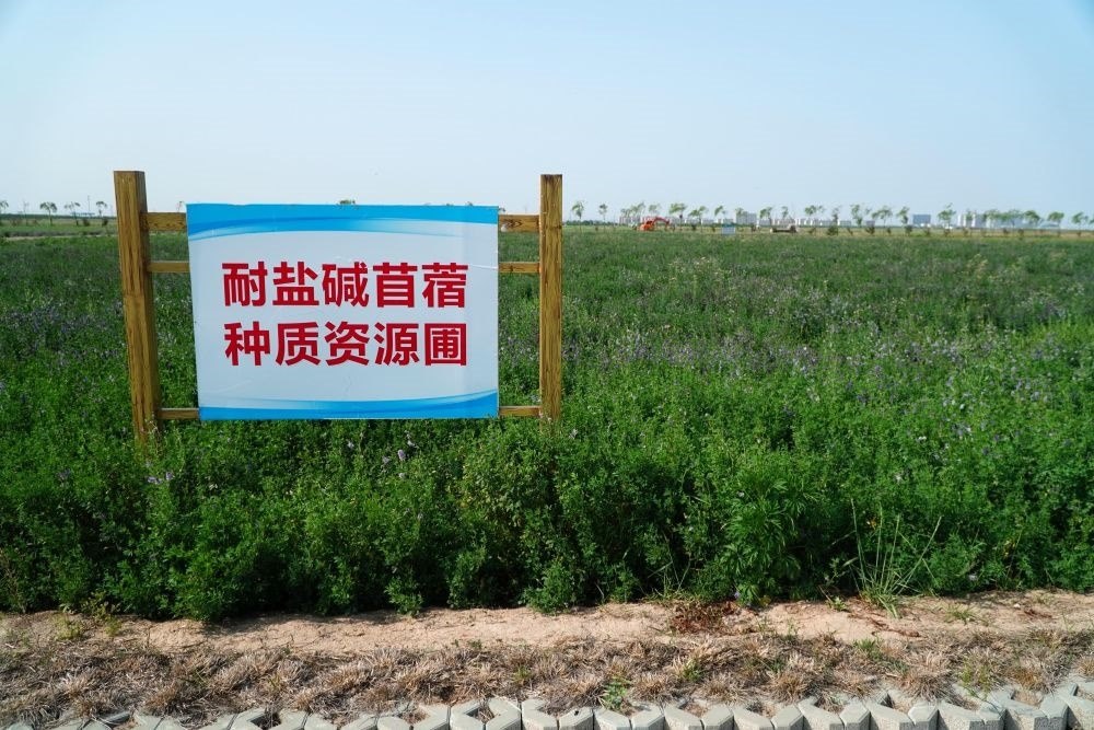 5月19日,位于山東省東營(yíng)市黃河三角洲農(nóng)業(yè)高新技術(shù)產(chǎn)業(yè)示范區(qū)的耐鹽堿苜蓿種質(zhì)資源圃。新華社記者 徐速繪 攝