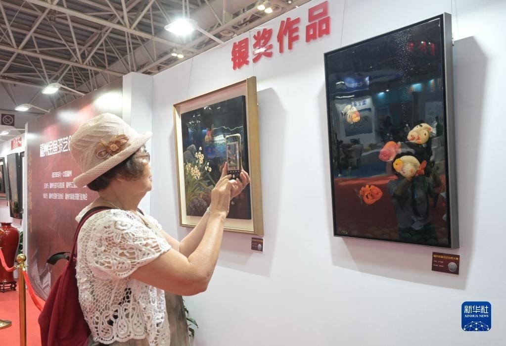 當日,第十屆中國(福州)金魚文化節(jié)在福州海峽國際會展中心舉行,金魚與以金魚為題材的福州傳統(tǒng)漆藝作品同場斗艷,展區(qū)內(nèi)除展示第六屆中國(福州)金魚大賽獲獎的金魚外,還展示了首屆福州“金魚”漆藝創(chuàng)新大賽的近百件作品。新華社記者 林善傳 攝