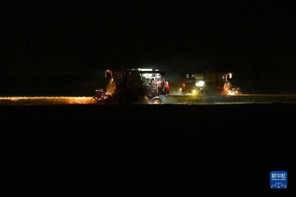 據(jù)氣象部門預(yù)報,6月3日夜間至5日,夏糧主產(chǎn)省安徽將迎來一次降水過程。當(dāng)前正值安徽省小麥搶收關(guān)鍵時期,不少地方挑燈夜戰(zhàn)搶收小麥,力保小麥顆粒歸倉。記者從安徽省農(nóng)業(yè)農(nóng)村廳了解到,截至6月2日,安徽已收獲小麥面積1632.1萬畝,麥?zhǔn)者M(jìn)度為38%。新華社記者 黃博涵 攝