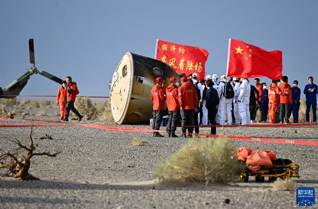 6月4日,神舟十五號載人飛船返回艙在東風著陸場成功著陸。新華社記者 任軍川 攝