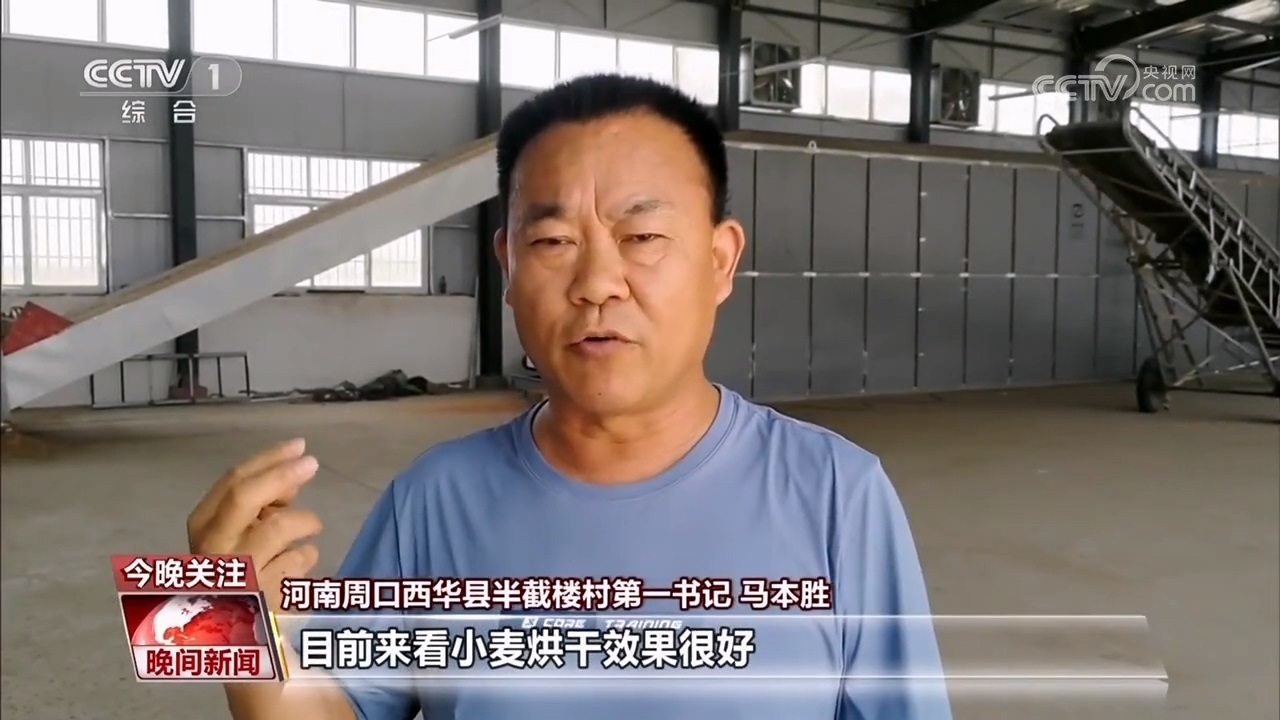 河南周口西華縣半截樓村第一書記 馬本勝:目前來看小麥烘干效果很好,我們號召村民抓緊時間搶收,我們這里免費為村民烘干。