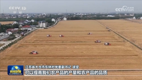 在今年的麥?zhǔn)找痪€(xiàn),更多的綠色生產(chǎn)模式正在推廣。江蘇省太倉(cāng)市東林村引進(jìn)先進(jìn)設(shè)備,把收割后的秸稈加工成高質(zhì)量的牛羊飼料,而牛羊產(chǎn)生的糞肥經(jīng)過(guò)發(fā)酵后制成有機(jī)肥拋撒還田,實(shí)現(xiàn)種養(yǎng)循環(huán)。