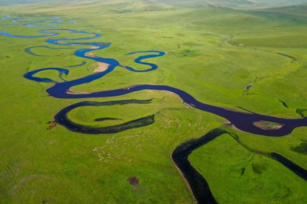 這是位于內(nèi)蒙古呼倫貝爾市陳巴爾虎旗境內(nèi)的莫日格勒河(2021年7月21日攝,無人機(jī)照片)。新華社記者 連振 攝