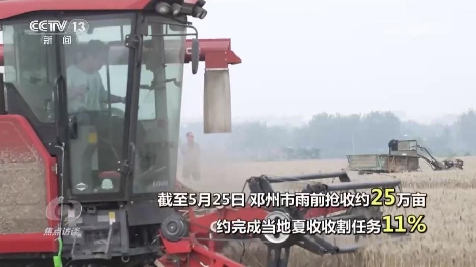 央視網(wǎng)消息(焦點訪談):今天是芒種節(jié)氣,芒種的意思是有芒的麥子快收,有芒的稻子可種。這是一年中農(nóng)事最忙的時節(jié)。夏熟的要收,秋收的要播,春種的要管,首先就是麥?zhǔn)?。河南被稱為“中原糧倉”,是我國小麥播種面積最大的省份,小麥年產(chǎn)量占到全國的四分之一,而位于河南南部的鄧州,則是全國知名的產(chǎn)糧大縣,小麥種植面積210多萬畝。但從5月25日開始,當(dāng)?shù)貐s連續(xù)幾天都是下雨天氣。怎么減輕雨水對收成的影響?