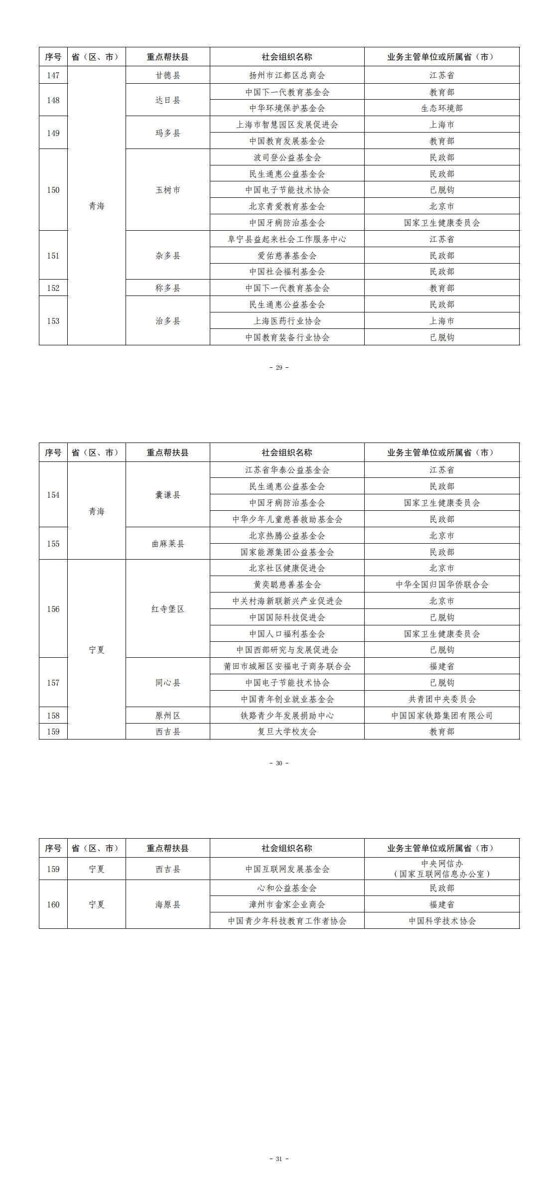 央視網消息:據(jù)民政部網站消息,為深入貫徹落實黨的二十大決策部署,根據(jù)《社會組織助力鄉(xiāng)村振興專項行動方案》,民政部、國家鄉(xiāng)村振興局在社會組織自愿報名、有關部門推薦申報、160個國家鄉(xiāng)村振興重點幫扶縣同意對接的基礎上,形成了《全國性社會組織、東部?。ㄖ陛犑校┥鐣M織與160個國家鄉(xiāng)村振興重點幫扶縣結對幫扶名單》(見附件),現(xiàn)予印發(fā)執(zhí)行,有關工作通知如下。