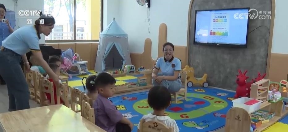托育中心按照每個(gè)班2名幼師、1名保育員的配置對(duì)幼兒進(jìn)行照護(hù)。每個(gè)月還會(huì)設(shè)計(jì)主題游戲活動(dòng),促進(jìn)孩子的身體發(fā)展、情感自理能力以及社交能力等。