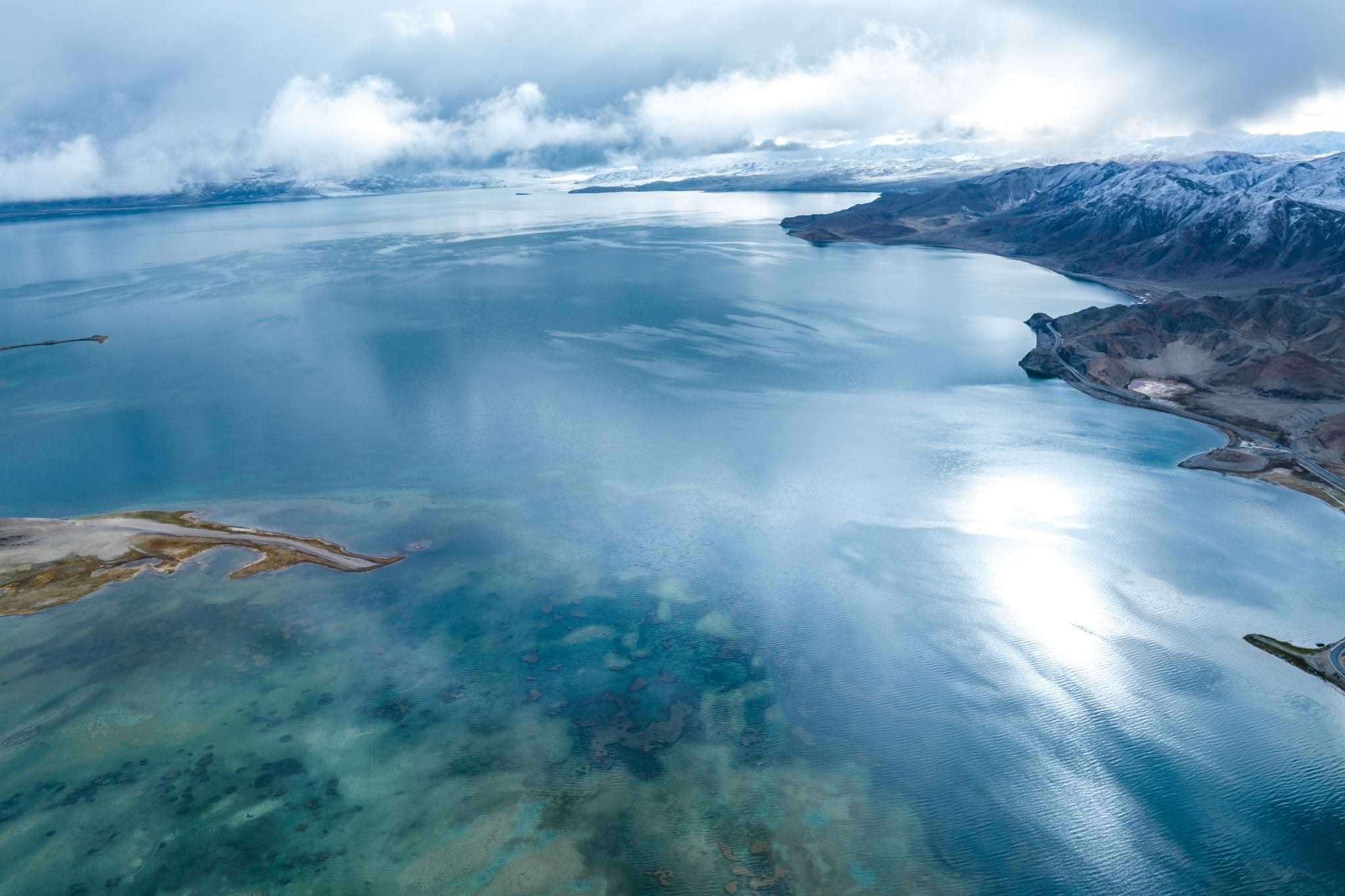 2023年6月6日,西藏阿里,日土縣班公湖,湛藍的湖水、潔白的雪山、奇特的沿湖景觀,構成一幅夏日醉美畫卷。視覺中國