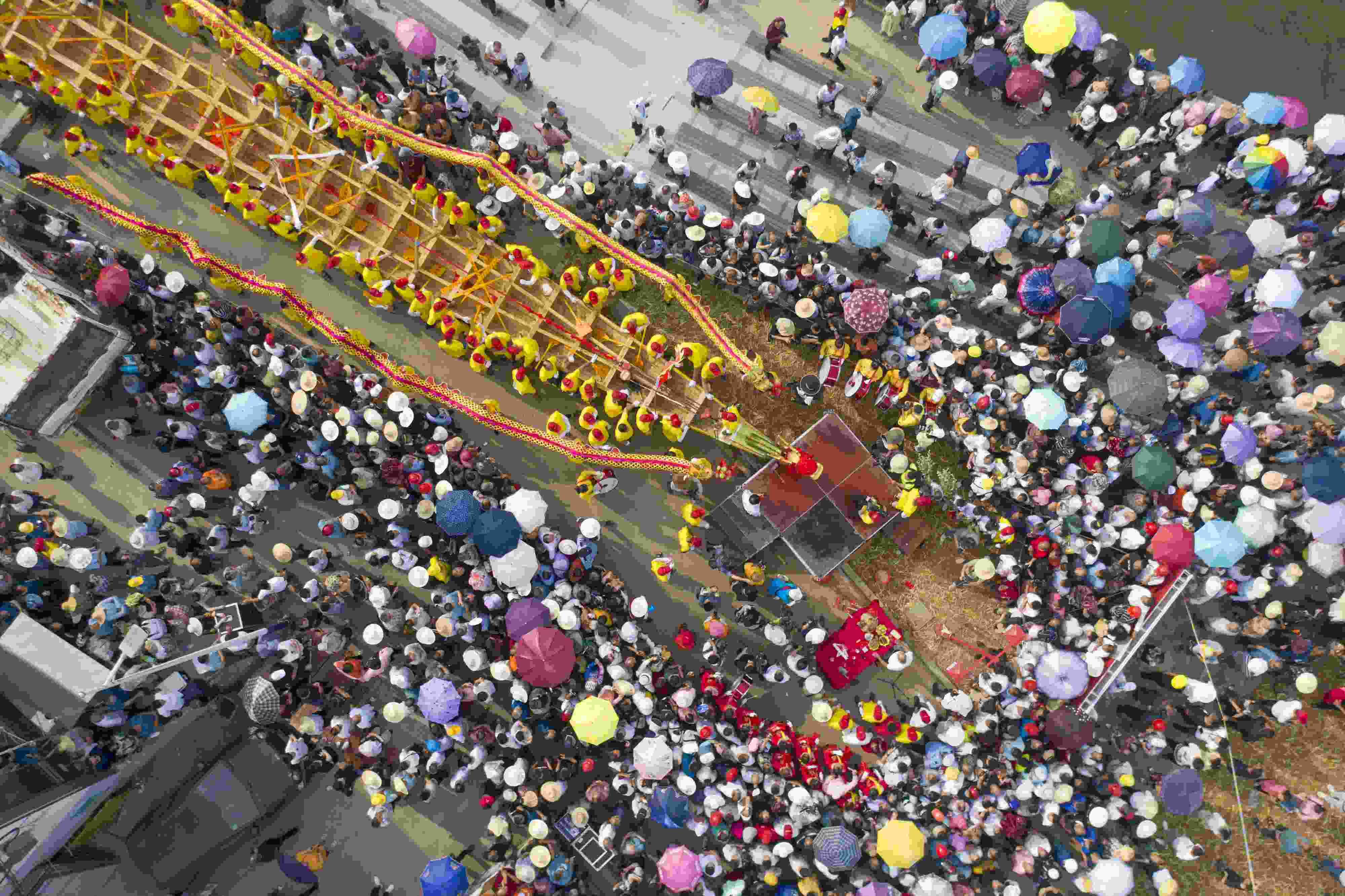 2023年6月12日,由北岸新村打造的長(zhǎng)達(dá)99.9米的巨型雙橈龍舟在湖南省益陽(yáng)市赫山區(qū)蘭溪鎮(zhèn)舉行“百米龍舟”登江儀式。 視覺中國(guó)