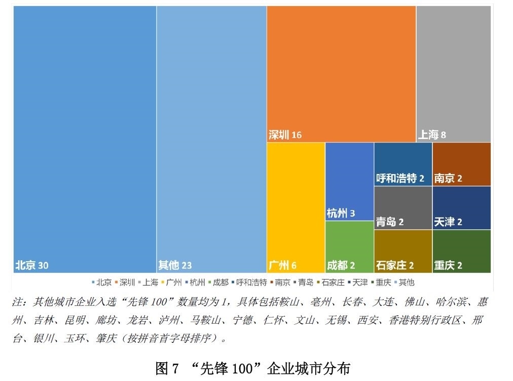 從城市維度觀察,北京、深圳、上海和廣州的“先鋒100”企業(yè)占比達到了六成左右,其中北京占比最高,北京(30家)、深圳(16家)、上海(8家)、廣州(6家)正在成為ESG建設(shè)的先行示范區(qū)。