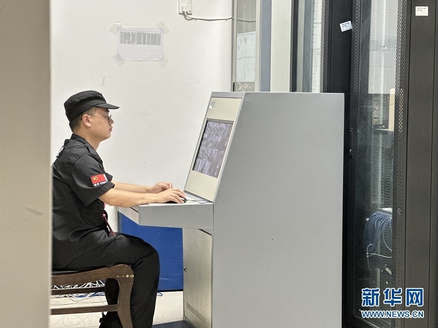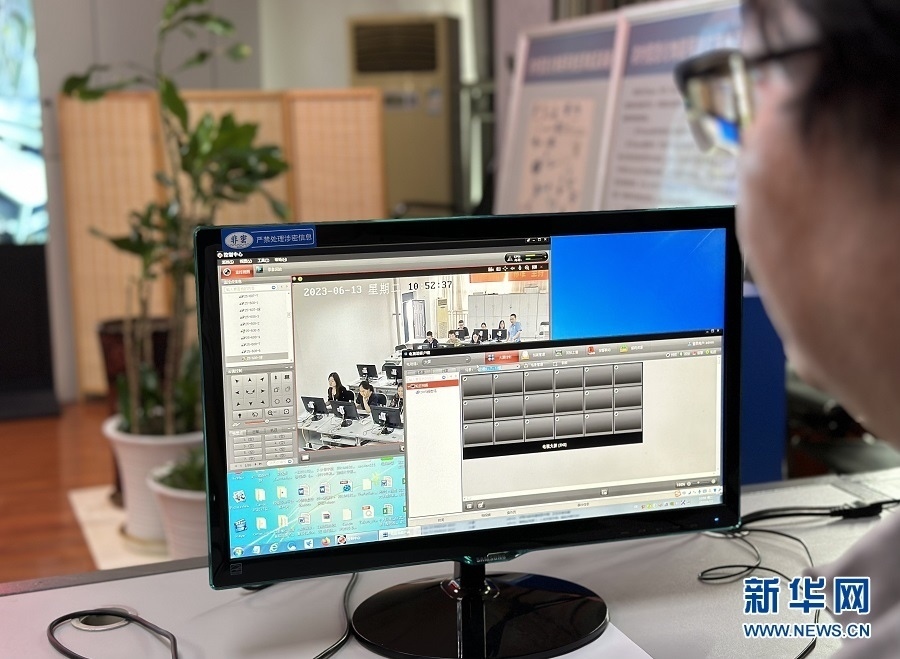 工作人員通過視頻實時監(jiān)控閱卷現(xiàn)場。新華網 彭浩然 攝