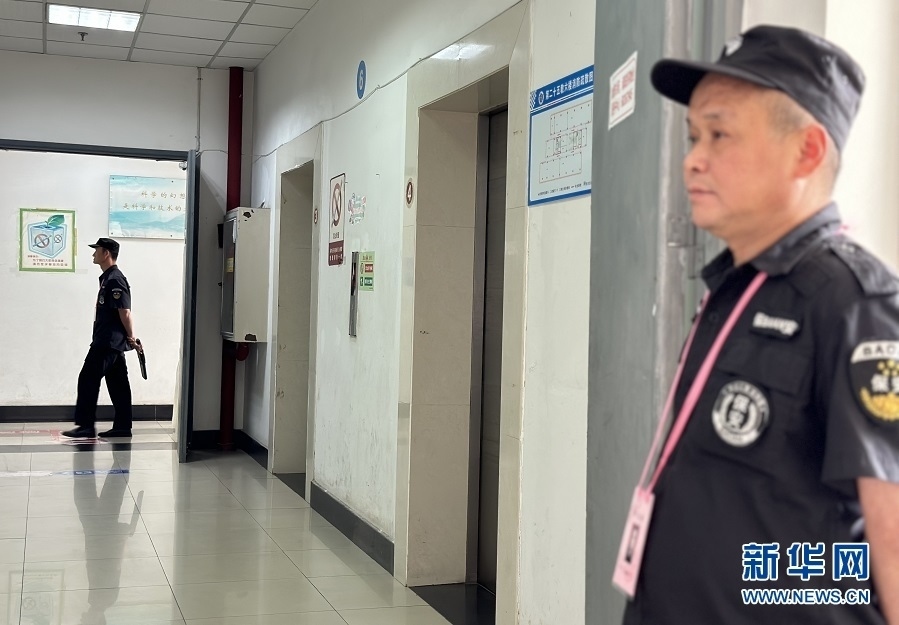 全國統(tǒng)考科目西南大學評卷點,安保人員正在執(zhí)勤。新華網 彭浩然 攝