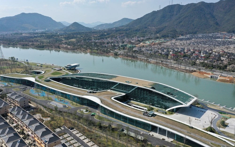 2022年3月11日拍攝的富陽(yáng)水上運(yùn)動(dòng)中心(無(wú)人機(jī)照片)。新華社記者 徐昱 攝