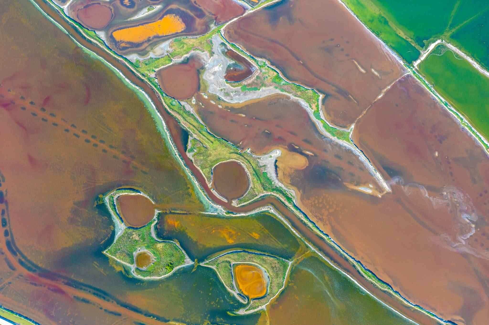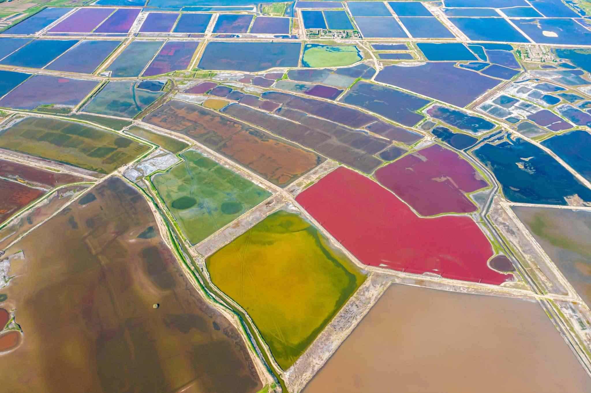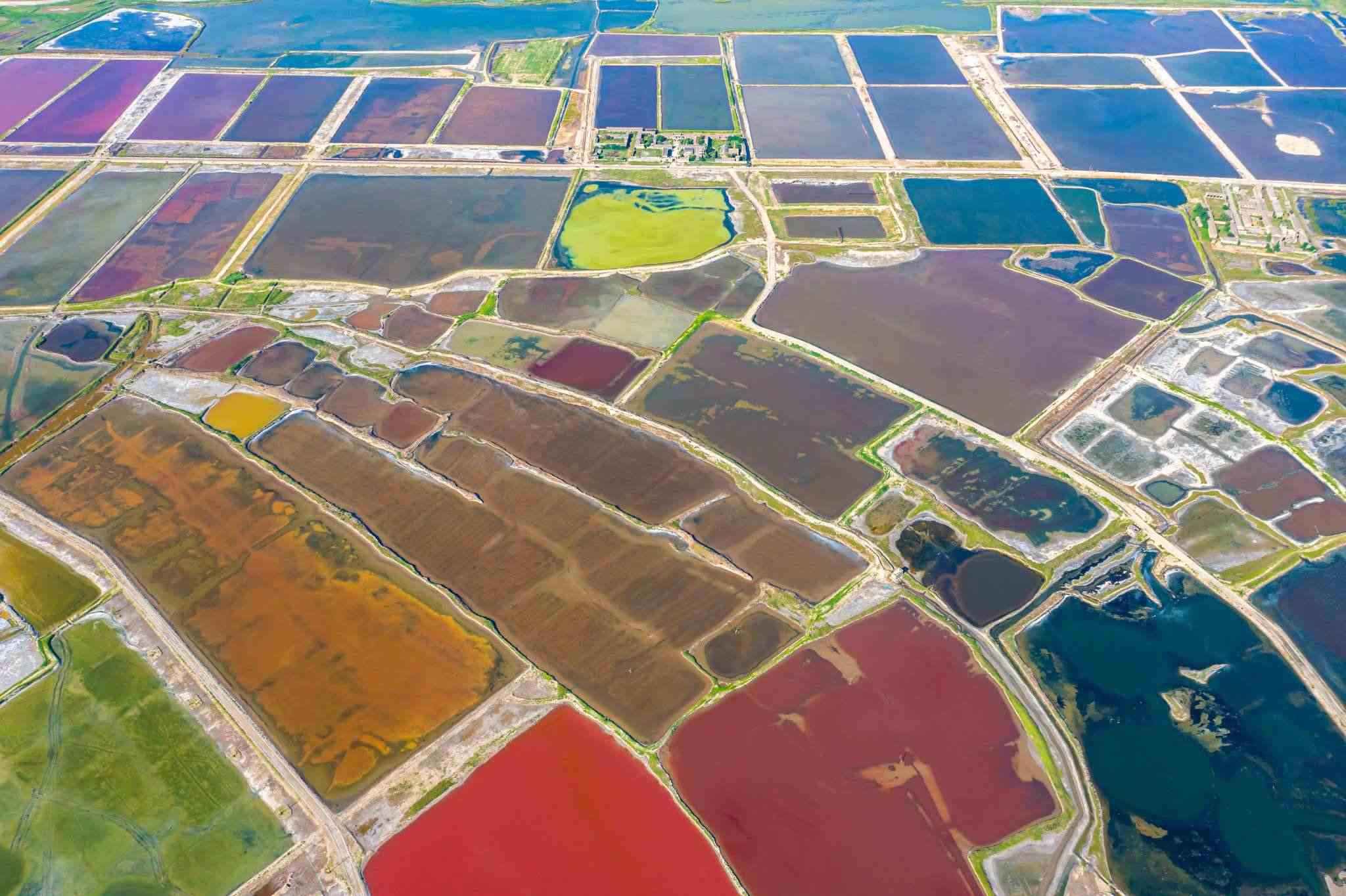 2023年6月14日,山西運城,七彩鹽湖呈現(xiàn)出色彩斑斕的景觀,猶如大地調(diào)色板,美不勝收。視覺中國