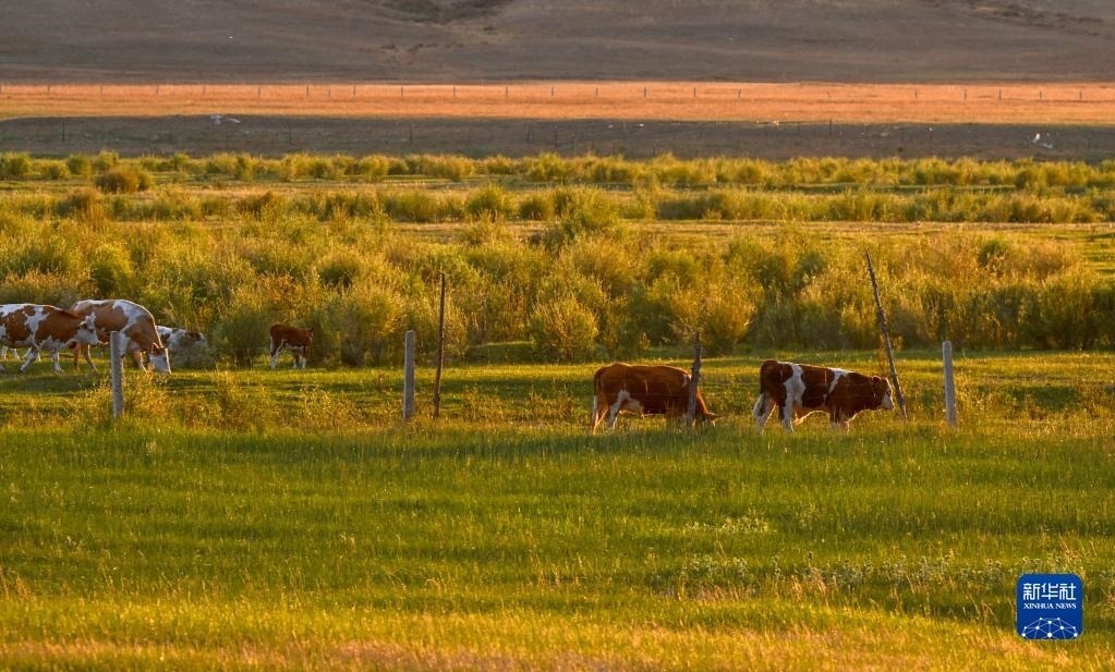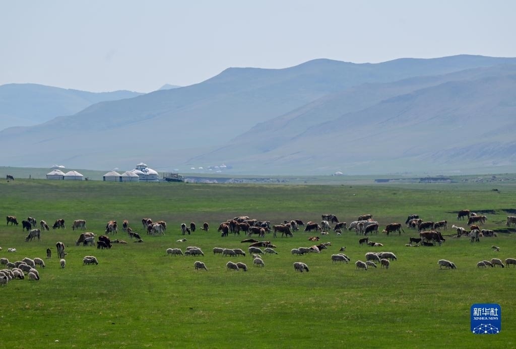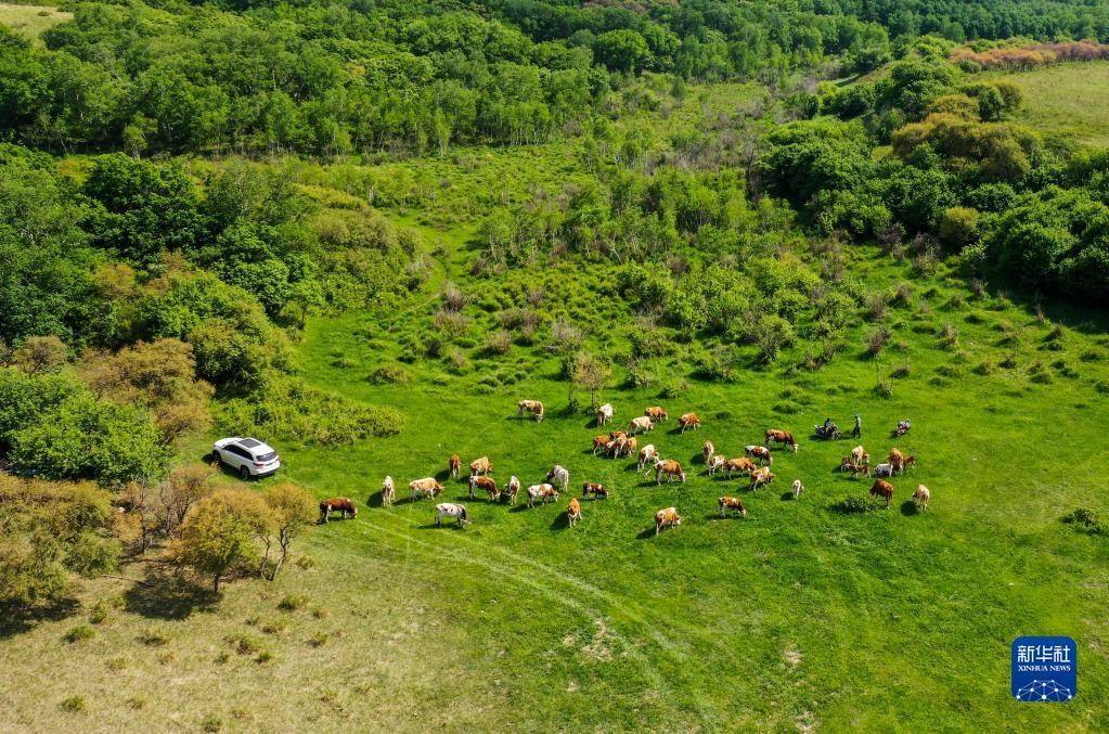 夏日,內(nèi)蒙古阿魯科爾沁草原綠意盎然,牛羊在草原上覓食,景色如畫(huà)。新華社記者 連振 攝