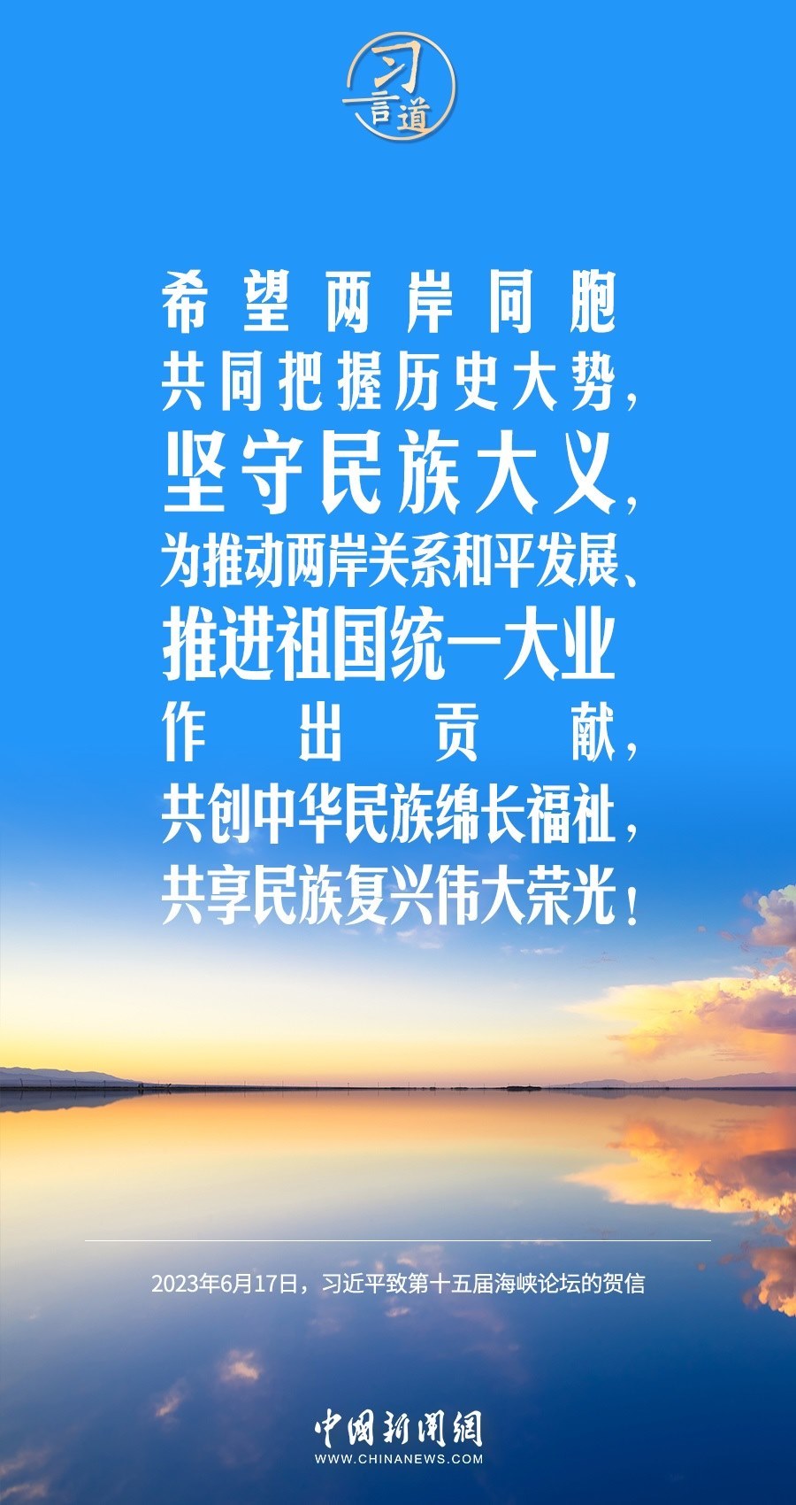 6月17日,中共中央總書記、國家主席習(xí)近平向第十五屆海峽論壇致賀信。習(xí)近平強調(diào)——