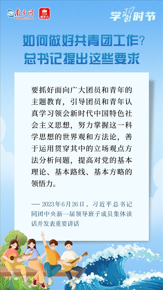 6月26日,習(xí)近平總書記同團(tuán)中央新一屆領(lǐng)導(dǎo)班子成員集體談話并發(fā)表重要講話??倳洀?qiáng)調(diào),黨和國家事業(yè)的希望寄托在青年身上。希望共青團(tuán)中央深入貫徹黨中央要求,切實(shí)肩負(fù)起新時代新征程黨賦予的使命任務(wù),傳承弘揚(yáng)優(yōu)良傳統(tǒng),堅持改革創(chuàng)新,更好把青年一代團(tuán)結(jié)凝聚在黨的周圍,為推進(jìn)強(qiáng)國建設(shè)、民族復(fù)興偉業(yè)接續(xù)奮斗。