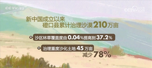 數(shù)據(jù)顯示,新中國成立以來,磴口縣累計(jì)治理沙漠210萬畝,沙區(qū)林草覆蓋度由0.04%提高到37.2%,治理重度沙化土地45萬畝,減少78%,向黃河年輸沙量減少到370萬噸,降低94.7%,沙漠治理呈現(xiàn)出“整體好轉(zhuǎn)、改善加速”的良好態(tài)勢,也因此形成了防沙治沙“磴口模式”。
