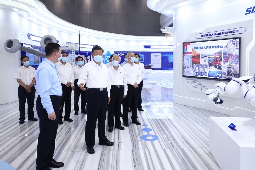 2022年8月17日下午,習(xí)近平在遼寧沈陽新松機(jī)器人自動(dòng)化股份有限公司展廳,了解公司生產(chǎn)經(jīng)營、自主創(chuàng)新情況。