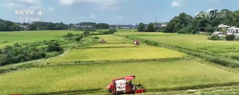 湖南:金秋水稻收割忙 風(fēng)吹稻浪好“豐”景