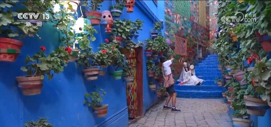 走出這戶人家,在喀什古城里走走停停,古城里的顏色猶如萬花筒一般,有藍(lán)色、紫色、黃色,正如艾德萊斯綢一般繽紛絢麗。遇到來自全國各地的游客,也會(huì)聽到五湖四海的口音。今年以來,旅游熱度不斷攀升,比如三五米就會(huì)遇到一家旅拍店,古城的旅拍店已經(jīng)發(fā)展到160多家。