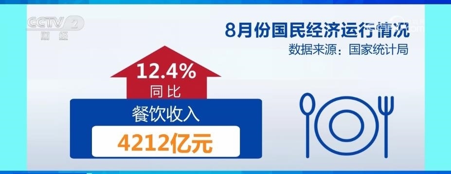 市場銷售加快恢復,8月份,社會消費品零售總額37933億元,同比增長4.6%,增速比上月加快;餐飲收入4212億元,同比增長12.4%,保持較快增速。