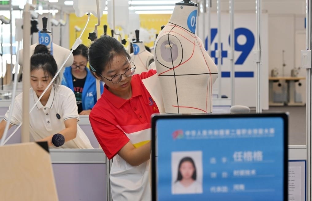 選手在參加時(shí)裝技術(shù)項(xiàng)目的比賽。新華社記者 李然 攝