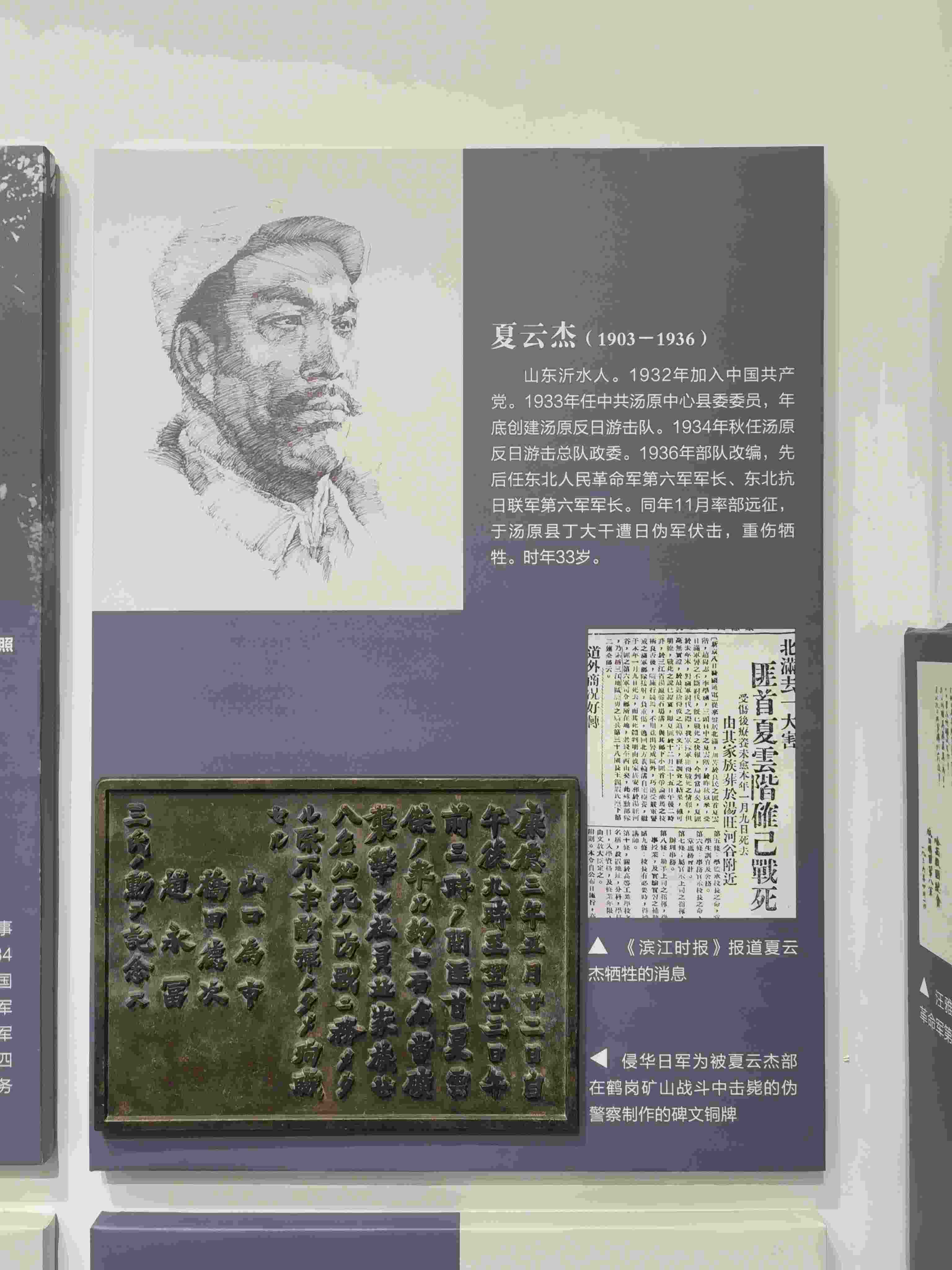 這塊碑文銅牌來自黑龍江鶴崗礦區(qū)的一座“忠靈塔”上,是日本侵略者為侵華戰(zhàn)爭(zhēng)中戰(zhàn)死的日偽軍而建。碑文銅牌,長(zhǎng)51厘米、高36.5厘米、寬2厘米、重12千克。上面的文字記載了日偽軍和抗聯(lián)戰(zhàn)士戰(zhàn)斗過程。從表述內(nèi)容來看,這塊碑文具有極大欺騙性。它制造了普通百姓遭土匪襲擊的“無辜”假象,妄圖以此加深東北民眾與革命隊(duì)伍之間的對(duì)立情緒。而事實(shí)真相是,1936年5月22日夜,東北人民革命軍第六軍軍長(zhǎng)夏云杰指揮六軍第一、二、三團(tuán),分兵兩路襲擊了鶴崗礦山。在我黨地下工作人員的密切配合下,順利解除了礦山警察二隊(duì)的全部武裝,并擊斃日軍指導(dǎo)官山口為市、橋田德次和偽礦山警察大隊(duì)隊(duì)長(zhǎng)趙永富。這次戰(zhàn)斗繳獲敵人大批槍支彈藥,我軍無一人傷亡。23日凌晨,夏云杰率領(lǐng)部隊(duì)攜帶戰(zhàn)利品凱旋。