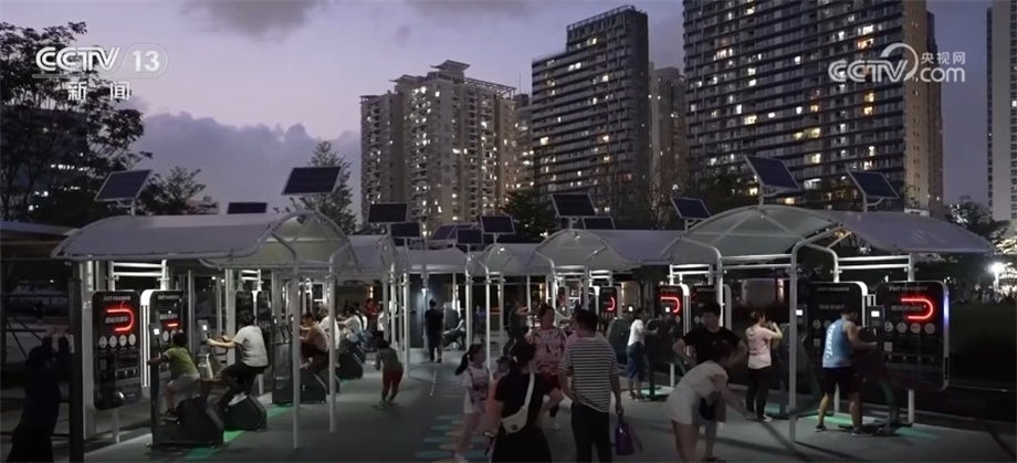 這些供市民24小時免費使用的室外智能健身設備,仿佛是把健身房從室內(nèi)搬到了室外,設備采用太陽能和自發(fā)電局域網(wǎng)供電等技術,節(jié)能環(huán)保。使用者可以掃描器械上的二維碼進行體質(zhì)測試,鍛煉時通過手機小程序獲取相關運動數(shù)據(jù),可以看到鍛煉之后的進步和變化,建立個人運動健康檔案,大大帶動了居民鍛煉的積極性。