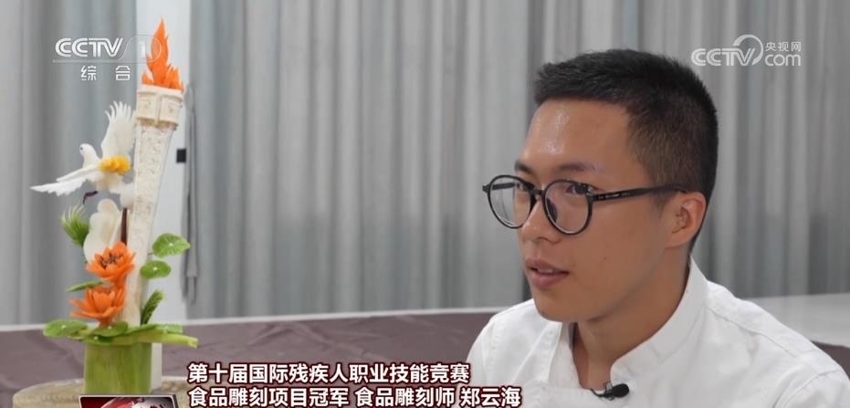 第十屆國(guó)際殘疾人職業(yè)技能競(jìng)賽食品雕刻項(xiàng)目冠軍 食品雕刻師 鄭云海:接下來(lái),以工作室為起點(diǎn),讓更多人認(rèn)識(shí)食品雕刻,用自己的力量帶動(dòng)更多的人去實(shí)現(xiàn)技能成才、技能報(bào)國(guó)。