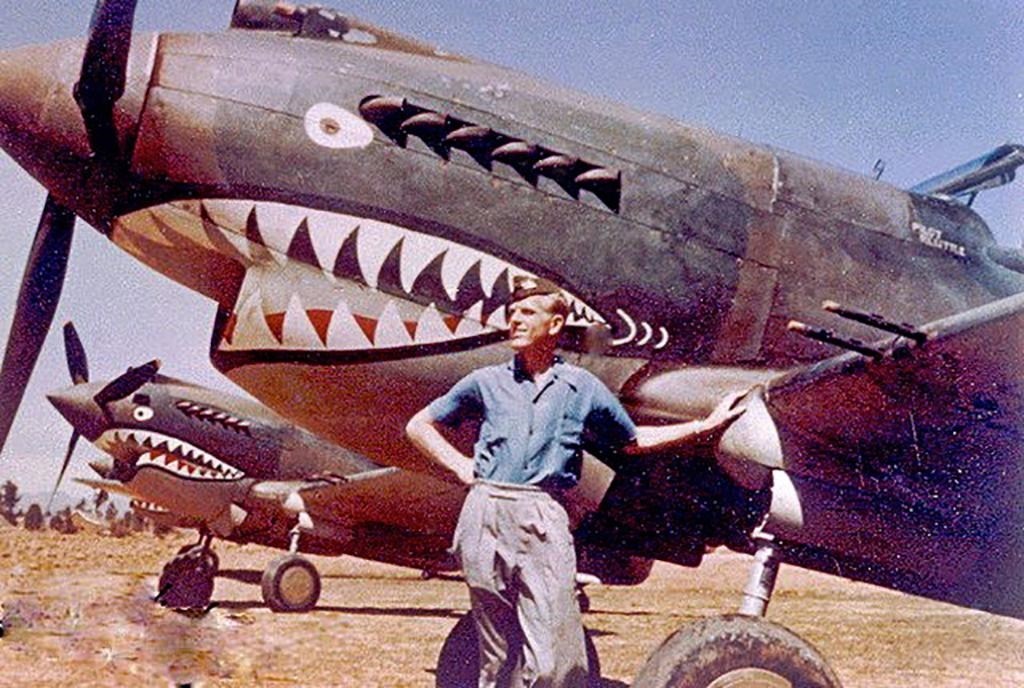 這是在二戰(zhàn)時期的昆明巫家壩機場,一名飛虎隊隊員在涂裝有“鯊魚嘴”標志的戰(zhàn)斗機前留影的資料照片。新華社發(fā)