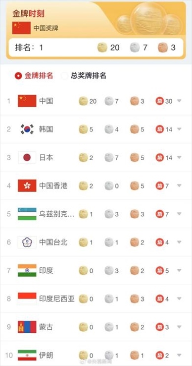 ·杭州亞運(yùn)會(huì)首日中國(guó)隊(duì)斬獲20金7銀3銅,位列獎(jiǎng)牌榜第一名。
