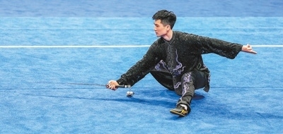 9月25日,武術(shù)男子太極拳太極劍全能決賽,中國體育代表團選手高浩楠在比賽中。記者 厲衍飛攝