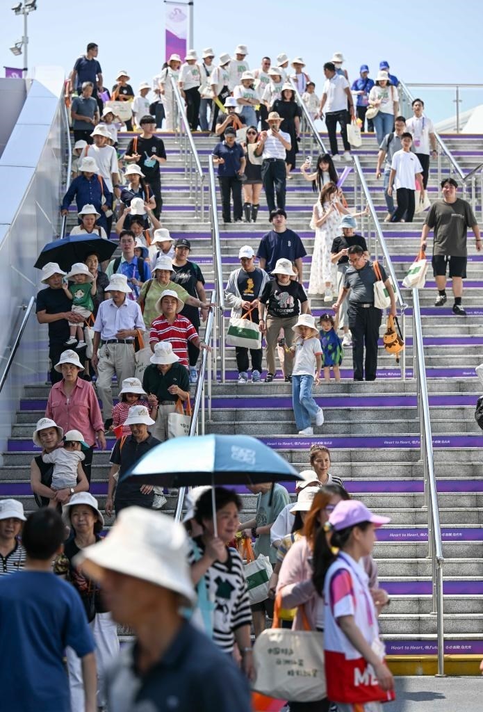 “我們還在觀眾組織上采取了一些柔性措施。”毛根洪說,比如,針對(duì)比賽時(shí)間較長(zhǎng)的足球、籃球、網(wǎng)球、擊劍等項(xiàng)目,在上下場(chǎng)交接過程中出現(xiàn)觀眾流動(dòng)的問題,及時(shí)調(diào)整入場(chǎng)政策,以確保觀眾可以二次入場(chǎng)。
