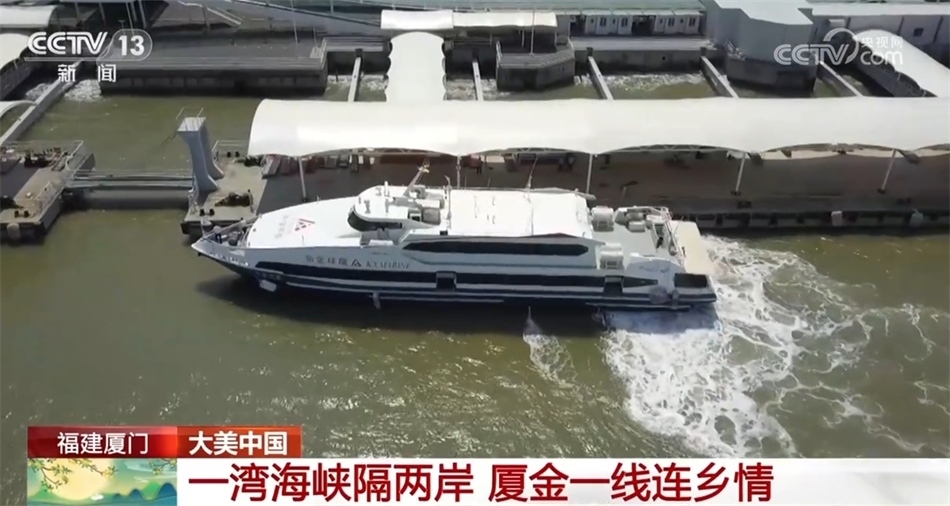現(xiàn)在我們看到的是福建廈門(mén)的五通客運(yùn)碼頭。從這里出發(fā)往返金門(mén)的廈金航線(xiàn),因?yàn)楹桨喽?、航程短,成為兩岸人員往來(lái)的主要通道。越來(lái)越多的臺(tái)胞在廈門(mén)就業(yè)、創(chuàng)業(yè),通過(guò)廈金航線(xiàn)實(shí)現(xiàn)“廈金一日生活圈”。中秋、國(guó)慶假期,這里也迎來(lái)客運(yùn)高峰,許多人選擇廈金航線(xiàn)回家和親人團(tuán)圓。